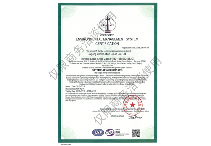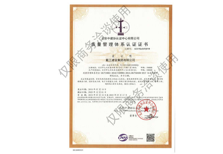 戴工建設集團有限公司,創建于2009年,注冊資本9888萬元人民幣。公司位于北京市大興區。具有建委頒發的建筑裝飾裝修專業壹級,防水保溫工程專業壹級,建筑幕墻專業貳級,消防設施專業貳級,電子與智能化專業貳級,特種工程(結構補強)專業不分等級,建筑機電安裝專業貳級,環保工程專業貳級,鋼結構專業貳級,建筑工程總承包貳級,建筑裝飾工程設計專項甲級,展覽陳列工程設計與施工壹級,展覽展示工程壹級...更多>>